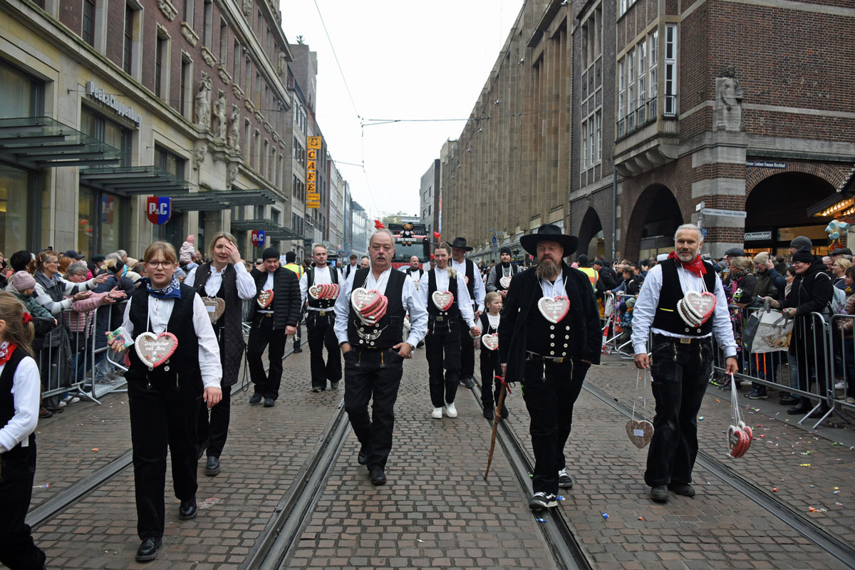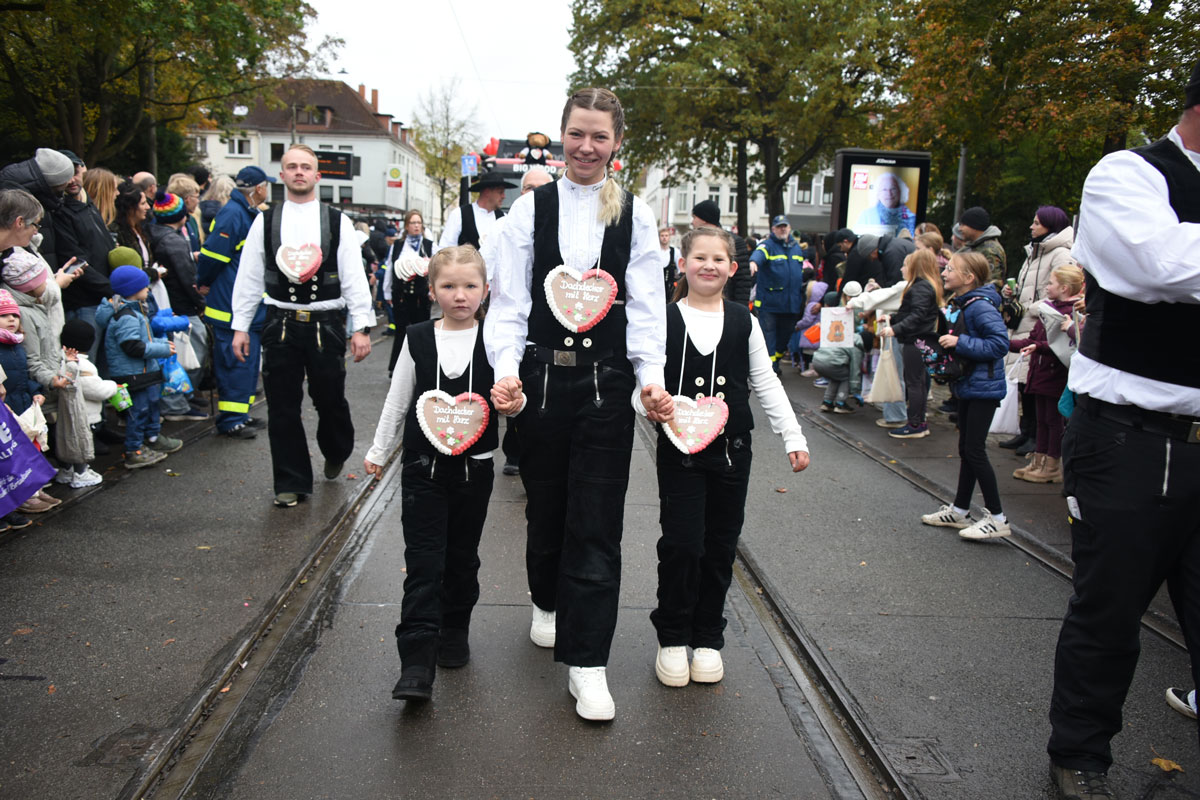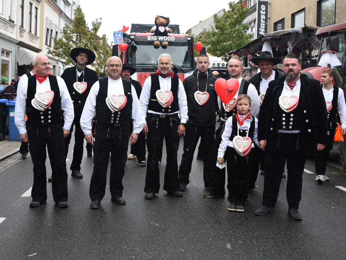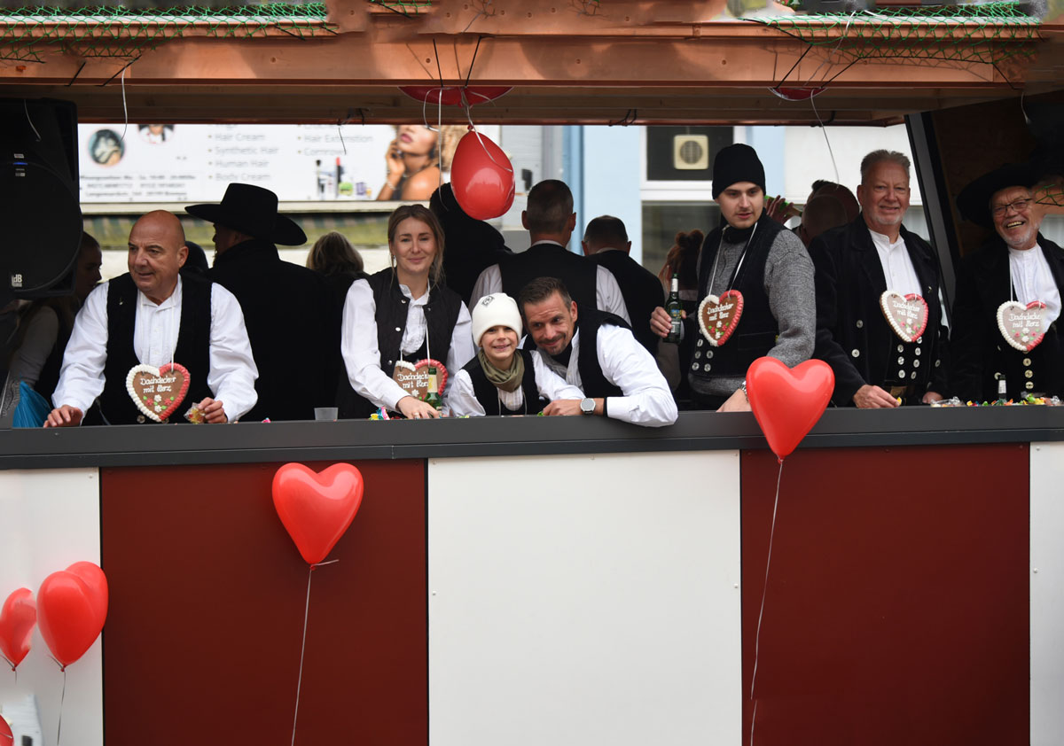 Auch 2025 zeigten die zünftig gekleideten „Dachdecker mit Herz“ wieder einen Teil ihres Leistungsspektrums, verteilten Bonbons, Informationen über den Berufsstand und die heiß begehrten Lebkuchenherzen. Mit einem Gründach versehen, transportierte der von Innungsmitgliedern geschmückte LKW „Big Wood“ der DEX eG, Weyhe die Handwerker und Freunde der Innung sicher durch die Zuschauermenge.