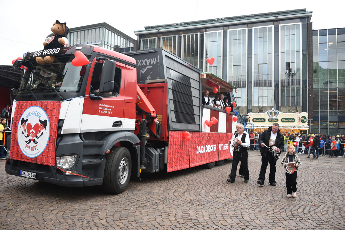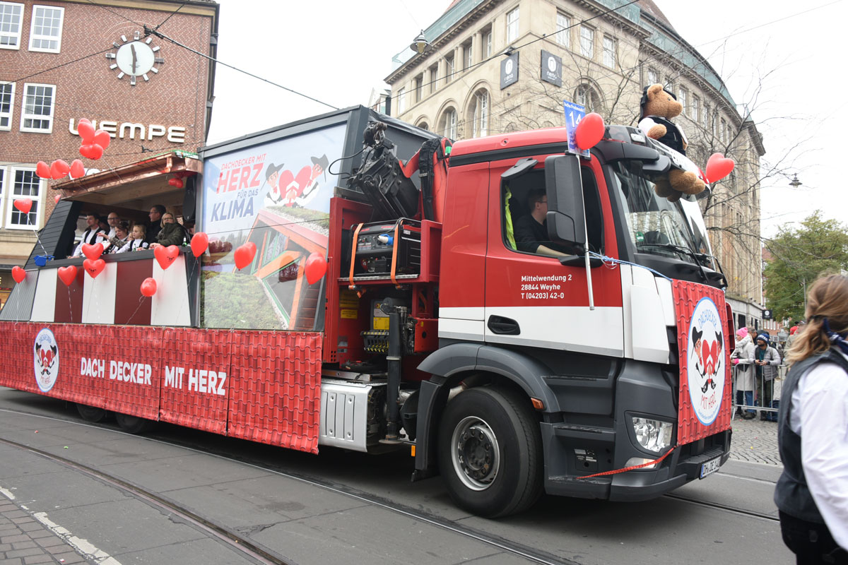 Ganz vorne mit dabei sein, hieß es für den neu gestalteten Festwagen der Dachdecker-Innung Bremen beim aktuellen Freimarktumzug. Zur traditionellen „5. Bremer Jahreszeit“ wurden über 30 Dachdeckerinnen und Dachdecker von über 100.000 Besuchern auf den Bremer Straßen mit Applaus begrüßt.