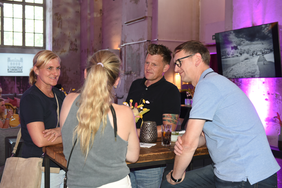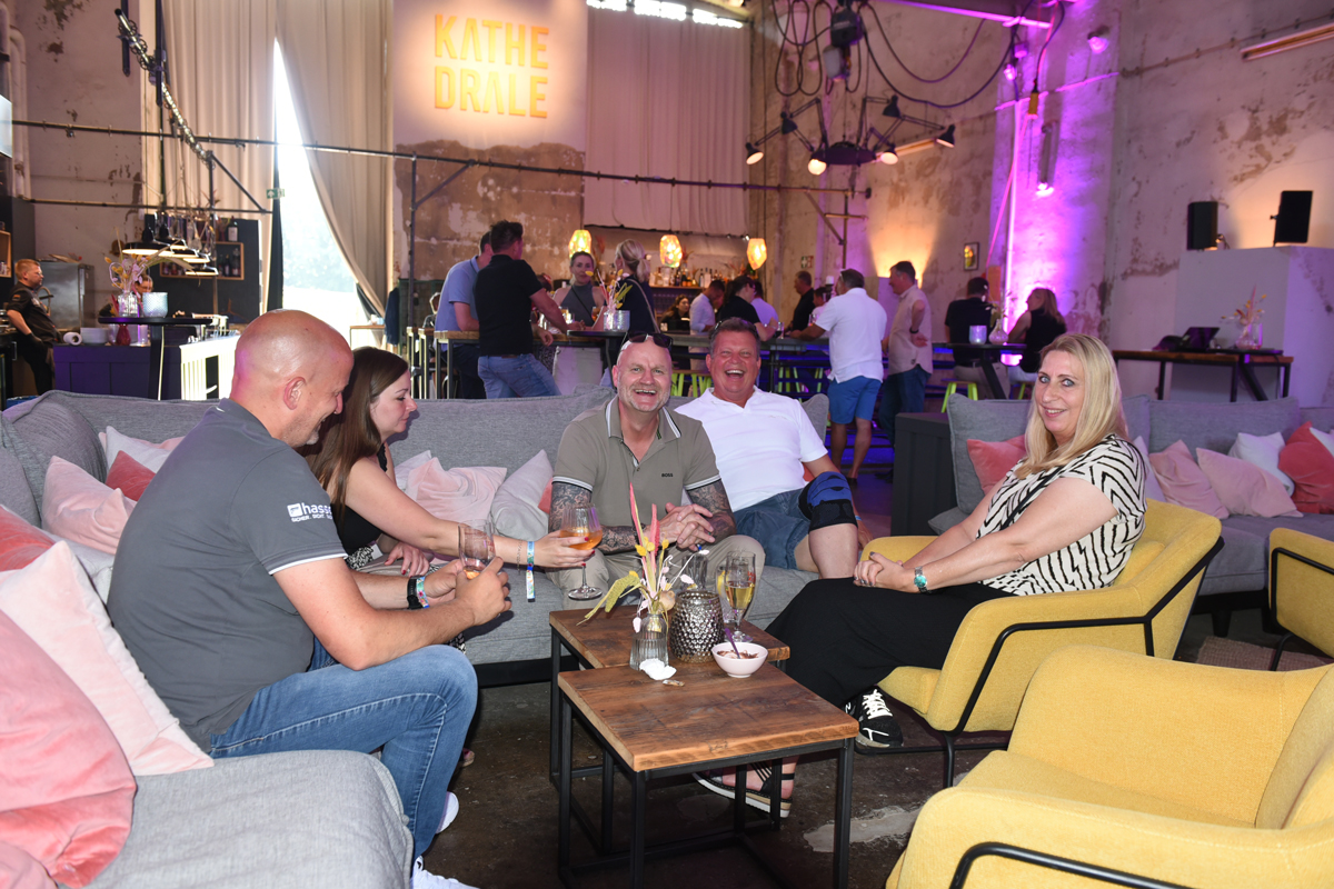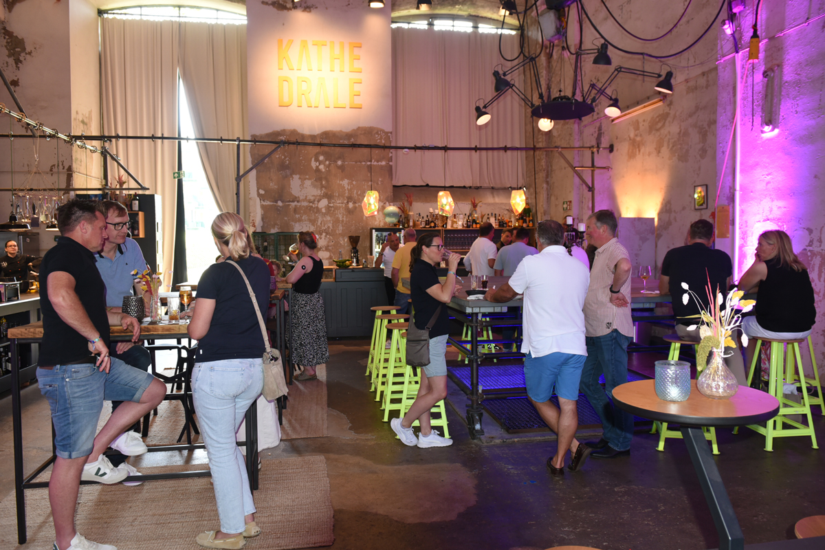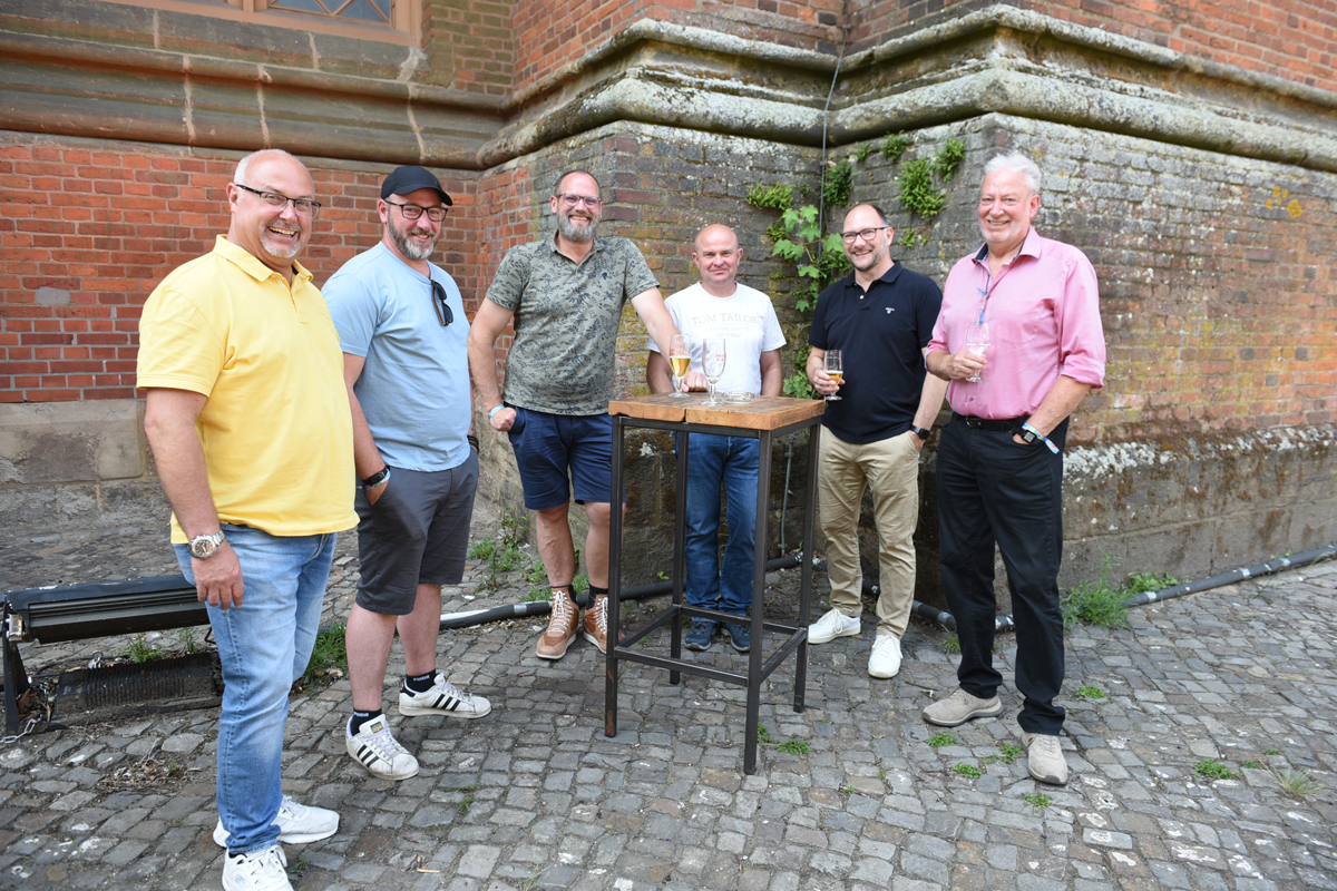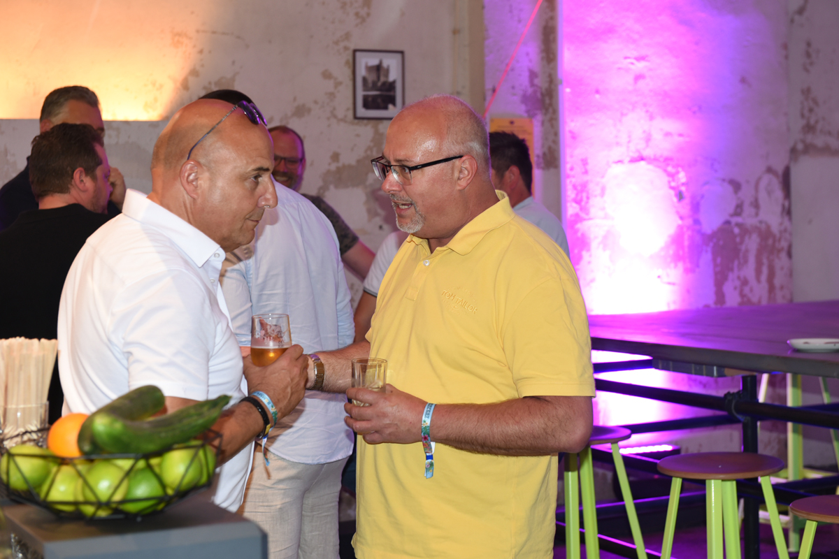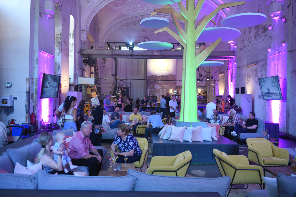 Die altehrwürdige riesige Halle („Kathedrale“), angenehm kühl, mit historischem Deckengewölbe und moderner Einrichtung, regte zu lockeren Gesprächen, Austausch und Fachsimpeln über den Stand der Dinge an. Leckere Speisen und Getränke wurden vom Top-Caterer vor Ort zubereitet. Serviert wurde zudem im Außenbereich, wo es sich die Gäste unter Sonnenschirmen oder unter schattigen Bäumen gemütlich machten.