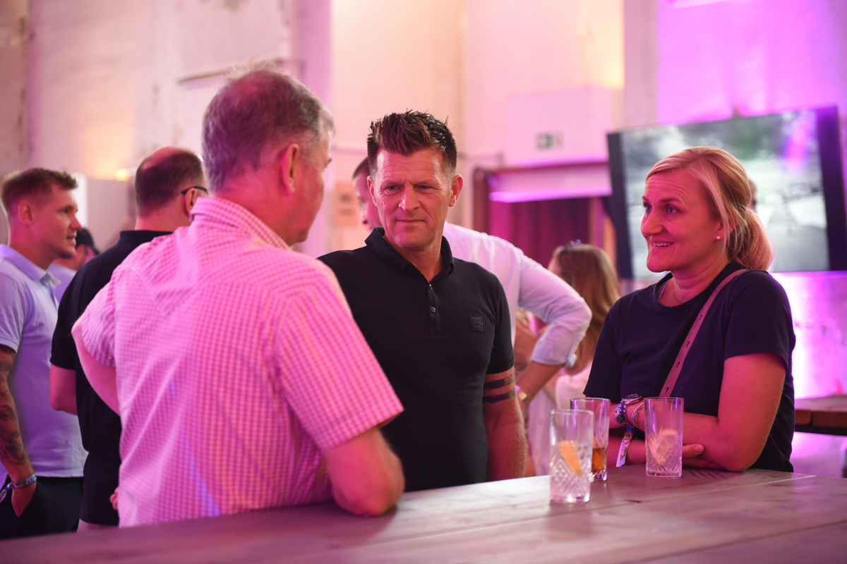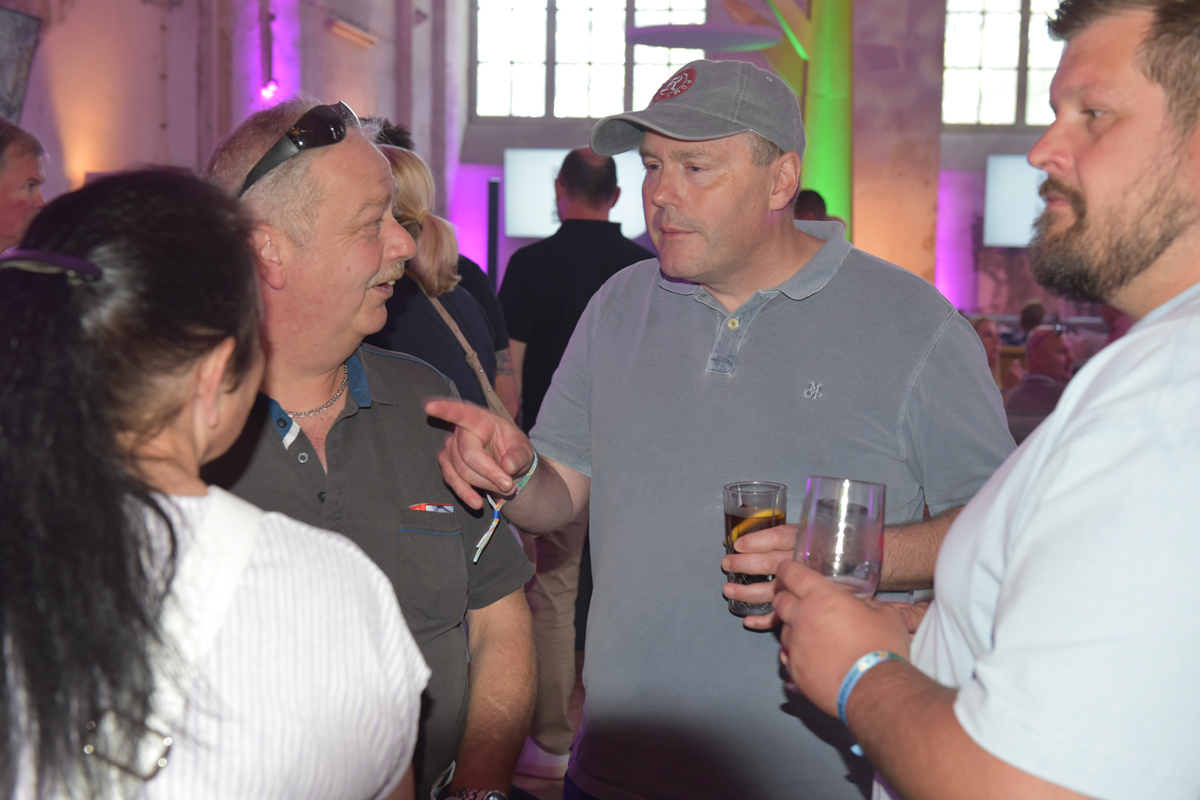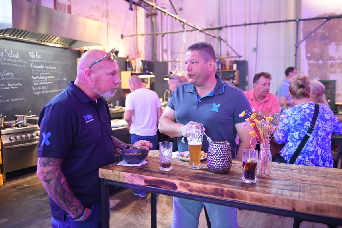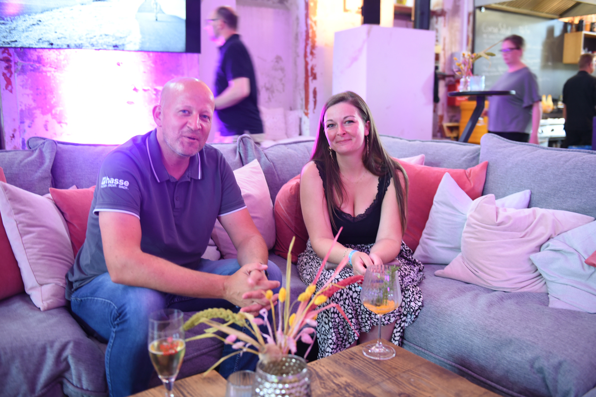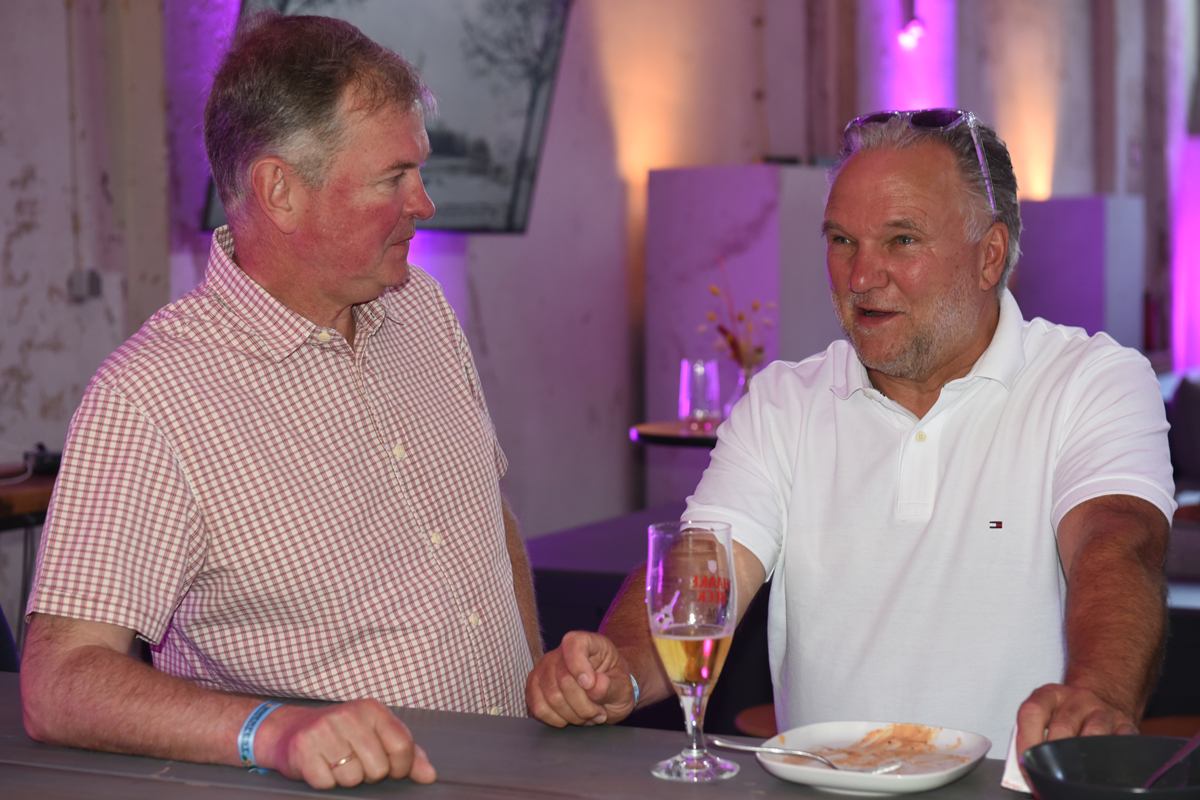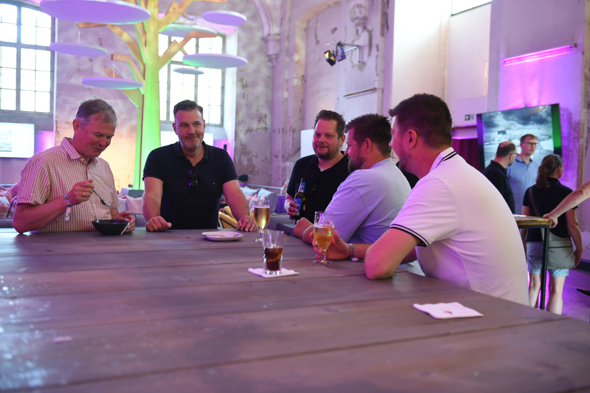 Die altehrwürdige riesige Halle („Kathedrale“), angenehm kühl, mit historischem Deckengewölbe und moderner Einrichtung, regte zu lockeren Gesprächen, Austausch und Fachsimpeln über den Stand der Dinge an. Leckere Speisen und Getränke wurden vom Top-Caterer vor Ort zubereitet. Serviert wurde zudem im Außenbereich, wo es sich die Gäste unter Sonnenschirmen oder unter schattigen Bäumen gemütlich machten.