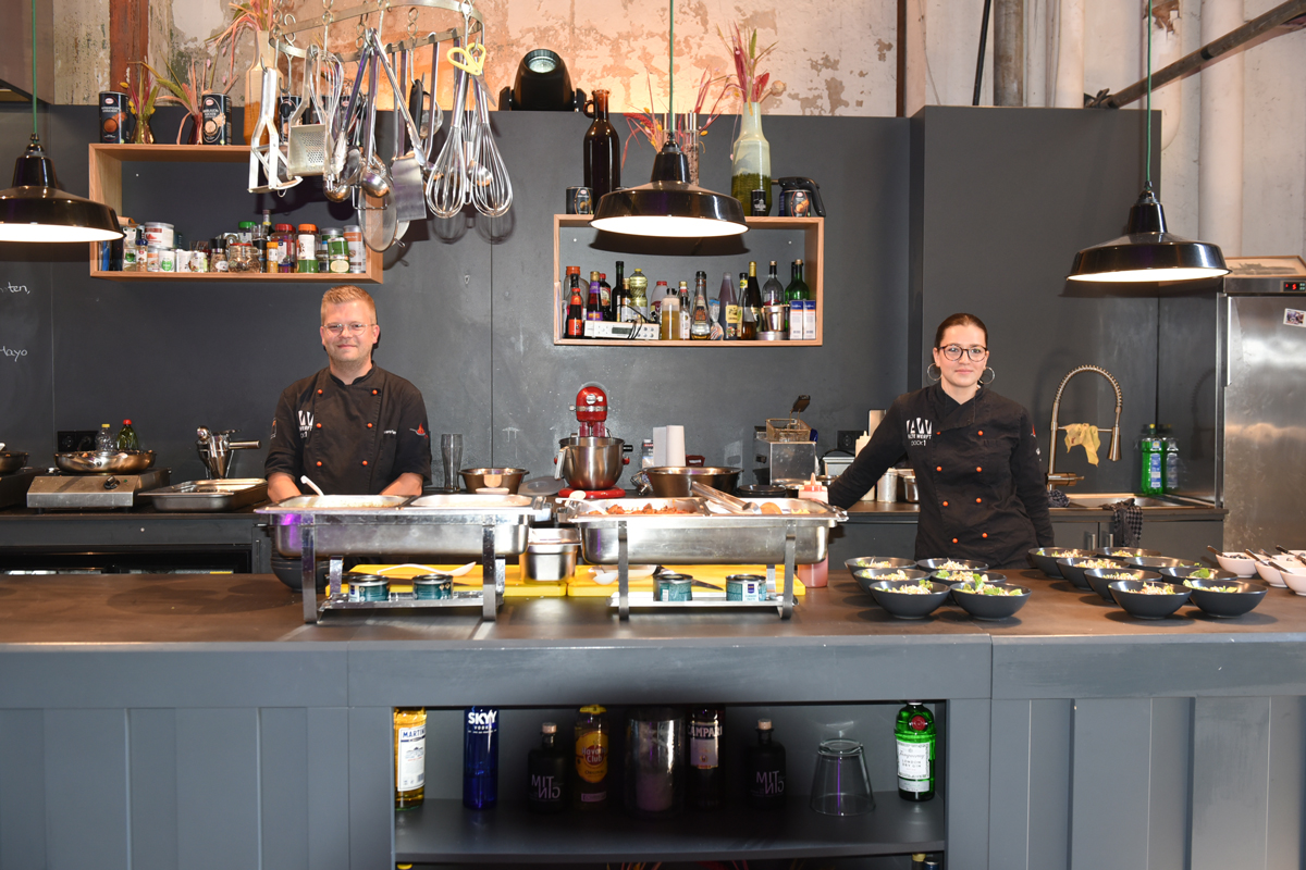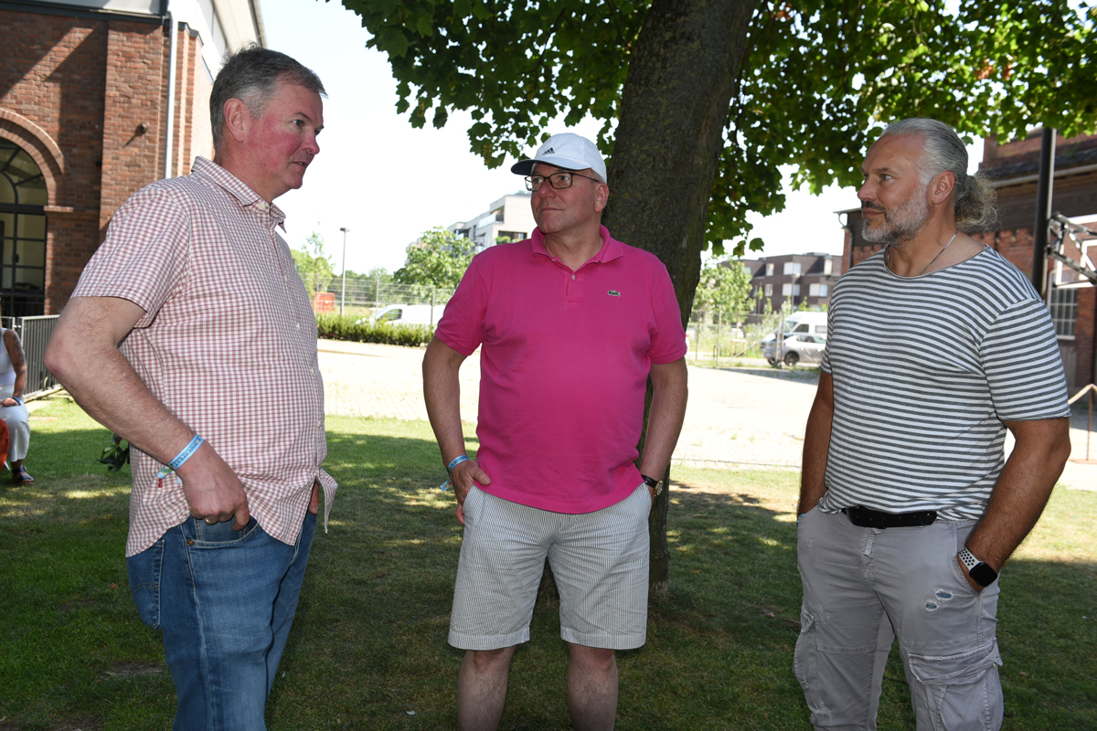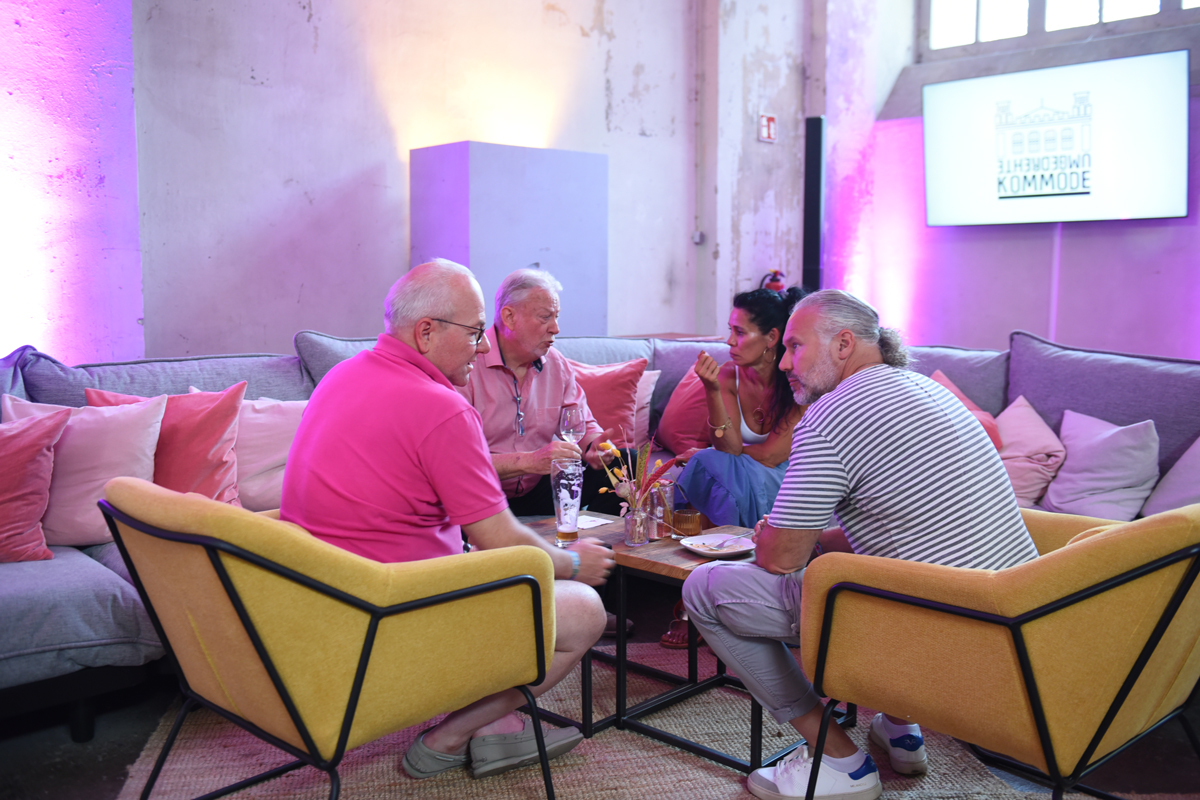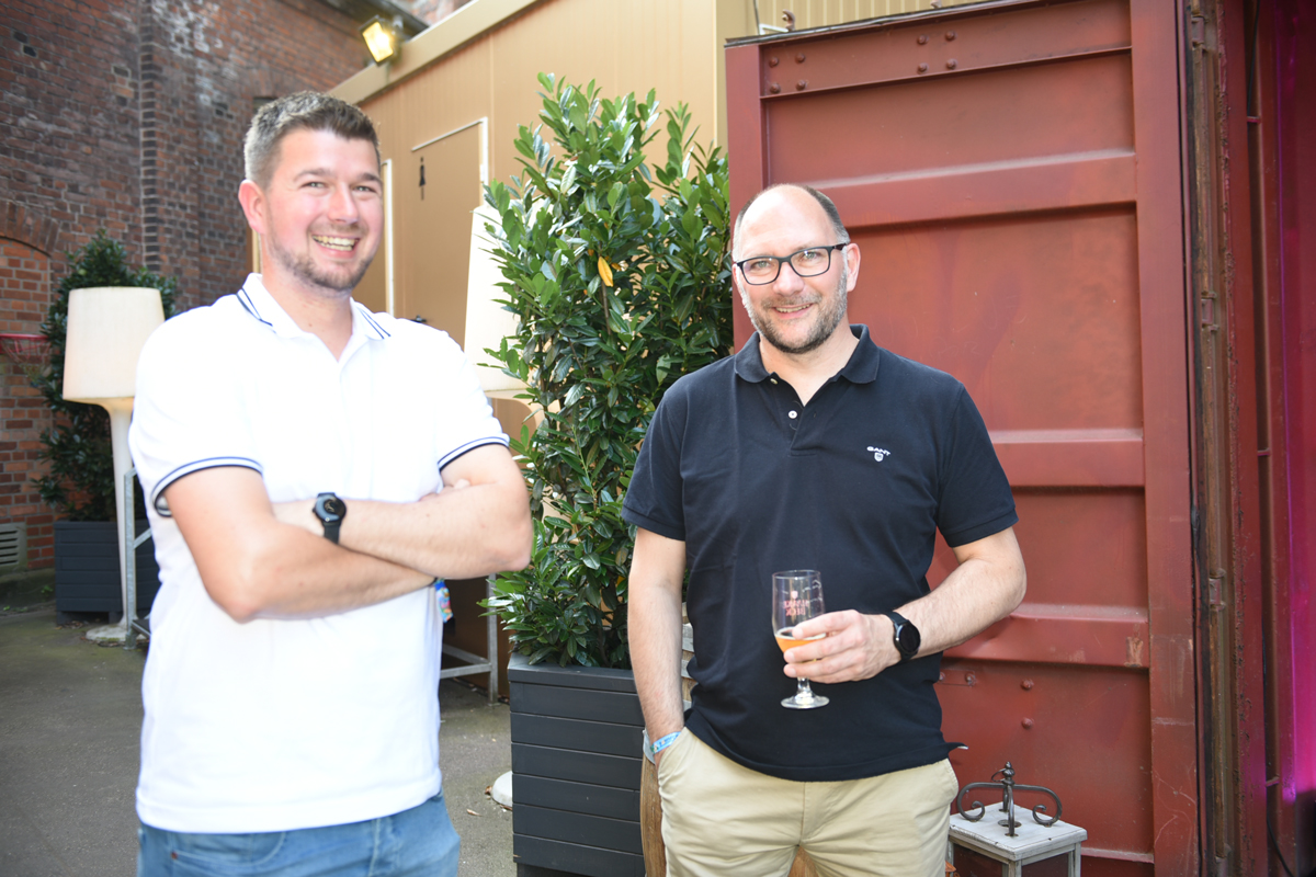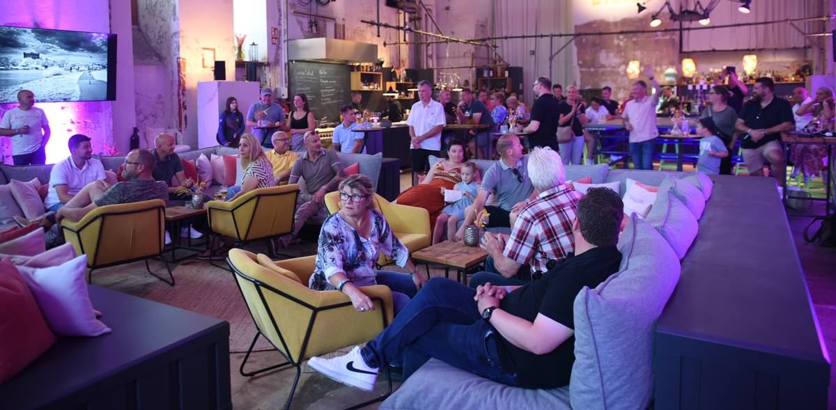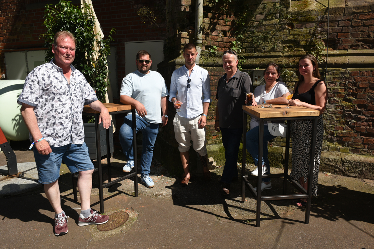 Die altehrwürdige riesige Halle („Kathedrale“), angenehm kühl, mit historischem Deckengewölbe und moderner Einrichtung, regte zu lockeren Gesprächen, Austausch und Fachsimpeln über den Stand der Dinge an. Leckere Speisen und Getränke wurden vom Top-Caterer vor Ort zubereitet. Serviert wurde zudem im Außenbereich, wo es sich die Gäste unter Sonnenschirmen oder unter schattigen Bäumen gemütlich machten.