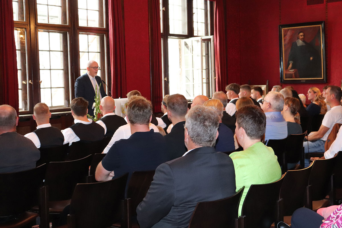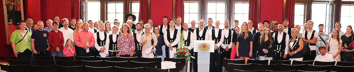 Bremen, 28. August 2025 „Ein Hoch auf uns! Auf dieses Leben. Auf den Moment, der immer bleibt…“ Treffender als Andreas Bourani es singt, ist dieser Augenblick nicht zu beschreiben, wenn 19 in Zunft gekleidete Junggesellinnen und Junggesellinnen den Kaminsaal des Bremer Rathauses betreten. Stolz und Erleichterung waren an Augen und Lippen abzulesen. Und das nicht nur bei den jungen Leuten, um die sich die Veranstaltung dreht - nein, den Eltern, Großeltern, Freundinnen und Freunden ging es offensichtlich genauso.