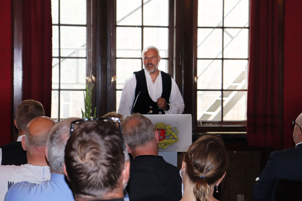 Kai Stührenberg überbrachte in seiner Funktion als Staatsrat die Glückwünsche des Bremer Senats. Er begrüßte die jungen Handwerkerinnen und Handwerker sowie ihre Begleitungen sehr herzlich und sprach ihnen seine Anerkennung für den erfolgreichen Abschluss aus. „Sie haben Großes geleistet“, so Stührenberg. Die Ausbildung sei vielseitig und damit anspruchsvoll, doch das Dachdeckerhandwerk sei ein wichtiger Partner, nicht zuletzt auch für die Energiewende und den Klimaschutz.