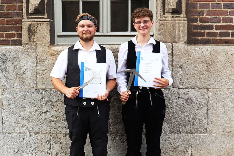 Für die beste Prüfung erhielt Michelle Dietrich von der Firma Schmidt einen Schieferhammer. Einen solchen bekam Jan Hendrik Harpers von der Firma Haarde für das beste Berichtsheft.