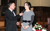Anlässlich einer Feierstunde der Handwerkskammer Bremen wurde Nina Schaardt im Bremer Rathaus ausgezeichnet. Die Mitarbeiterin im Dachdecker-Innungsbetrieb Schaardt-Team schloss ihren Betriebswirt des Handwerks mit der Note „sehr gut“ ab und erhielt die Urkunde aus den Händen von Sozialsenatorin Anja Stahmann. Zu den Gratulanten gehörten der stellvertretende Innungsobermeister der Dachdeckerinnung Bremen, Holger Becker (l.) und Vater Bernhard Schaardt (r.).