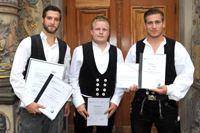 Prüfungsbester wurde René Tramitzke (Fa. Friedrich Schmidt, Bremen) gefolgt von Werner Dierks (Fa. Ahrens, Bremen) und Philipp Schriefer (Fa. Gloede, Grasberg). Sie erhielten wertvolle Sach-und Fortbildungspreise von Bauder, Dachdecker-Einkauf Nordwest und Velux.