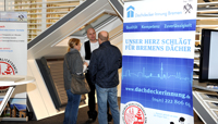 "Hier wird ausgebildet!" war deutlich auf dem Boden der Messehalle zu sehen und zeigte direkt auf den Messestand der Dachdecker-Innung Bremen. Auf dem mit Velux gemeinsam ausgerichteten Stand, konnte man sich über mangelndes Interesse der Besucher nicht beklagen. Nach wie vor steht die Sanierung beim Verbraucher hoch im Kurs und die Innungsmitglieder hatten an den 3 Tagen gut zu tun, um Allen die fachlich versierten Antworten zu geben.